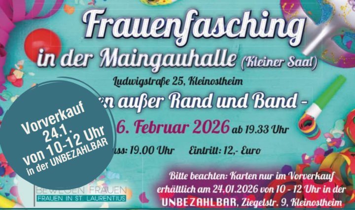 in der UNBEZAHLBAR: Samstag, 24. Januar, 10 – 12 Uhr Vorverkauf Frauenfasching weiterlesen