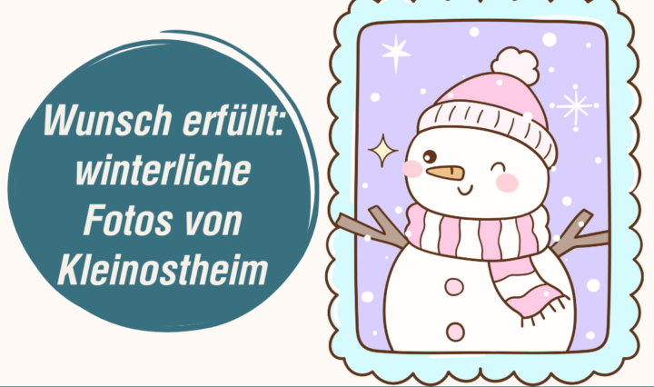 Jemand hat es versäumt, vom außergewöhnlich wundervoll winterlichen Kleinostheim Fotos zu machen. Wer mag eine Freude bereiten und seine 1-2 schönsten teilen? Nur für privat, fürs Fotoalbum. Entweder an unsere Email-Adresse oder an Marion 0160 8421 692 Gewünscht: winterliche Fotos von Kleinostheim weiterlesen