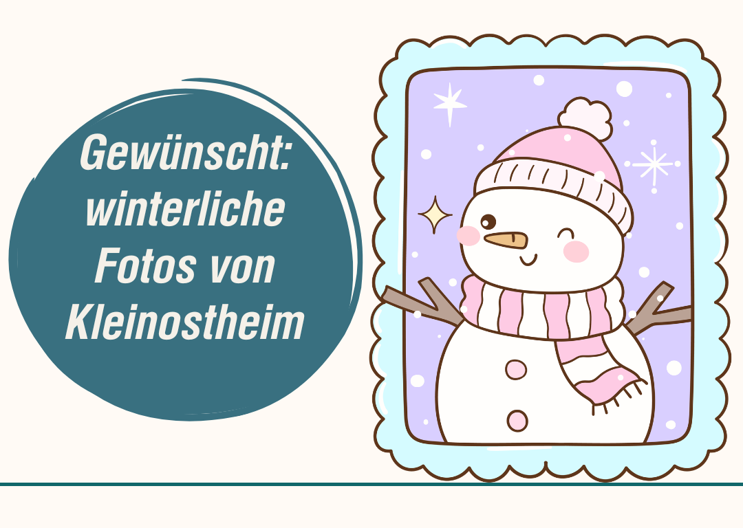 Jemand hat es versäumt, vom außergewöhnlich wundervoll winterlichen Kleinostheim Fotos zu machen. Wer mag eine Freude bereiten und seine 1-2 schönsten teilen? Nur für privat, fürs Fotoalbum. Entweder an unsere Email-Adresse oder an Marion 0160 8421 692
